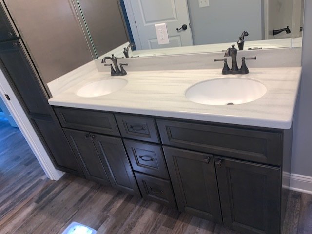 Laminate is a great choice for saving some money but keeping an amazing look. The Girls have a wide selection from their partnered brands to choose from. Call us today to find the perfect counter tops for your home! Ask us about the under mount sink option!